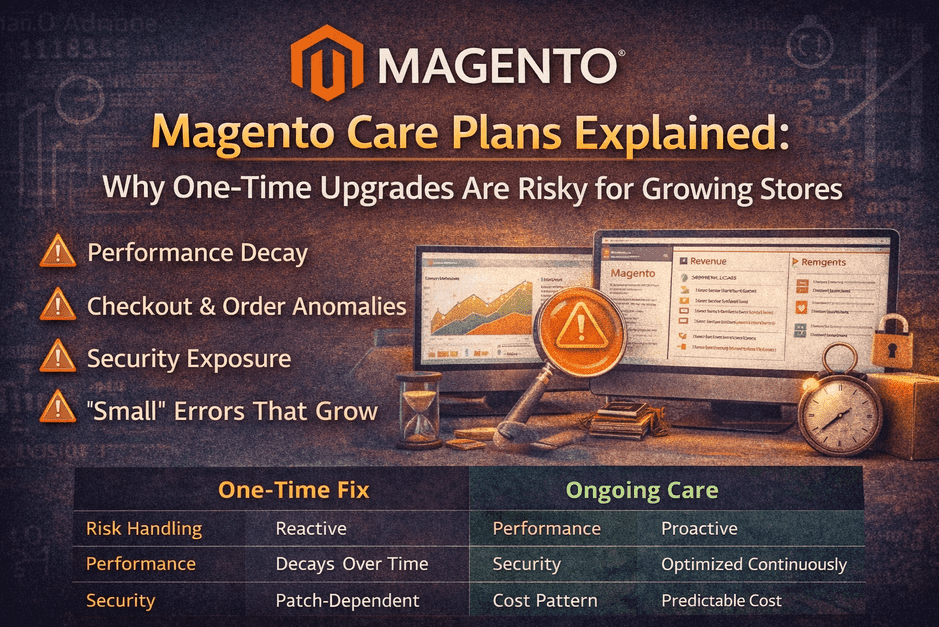 Magento Care Plans Explained: Why One-Time Upgrades Are Risky for Growing Stores